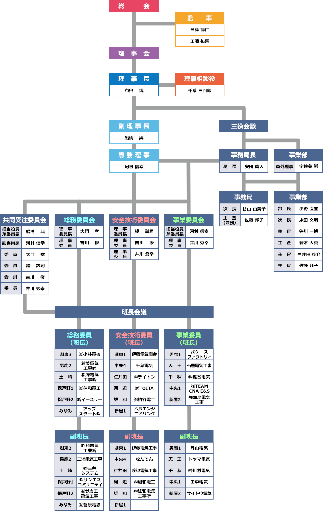 | 副理事長 | 兼)共同受注委員長・安全技術委員会担当 | 船橋 與 | 船橋電機(資) |